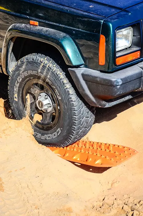 A good set of recovery tracks should be ridged, firm and able to support your vehicle’s mass. Flexible, fold-up, roll-up, or fill-up recovery tracks are seldom worth the trouble – they have a tendency to sink under the weight of a hefty 4×4. You need something that spreads your vehicle’s mass and acts as a platform for your 4×4 to climb up and onto. The moment your 4×4 is able to lift itself out of a boggy situation, half the recovery work is done.