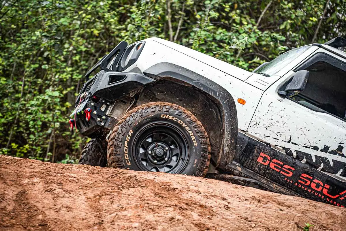 With a paltry 195/80/15s fitted on the GEN4 model, the Jimny’s standard tyre size offers minimal traction and clearance for rugged terrain.