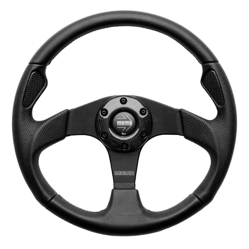 MOMO Jet — Black Leather, Black Spokes, 350 mm Steering Wheel
