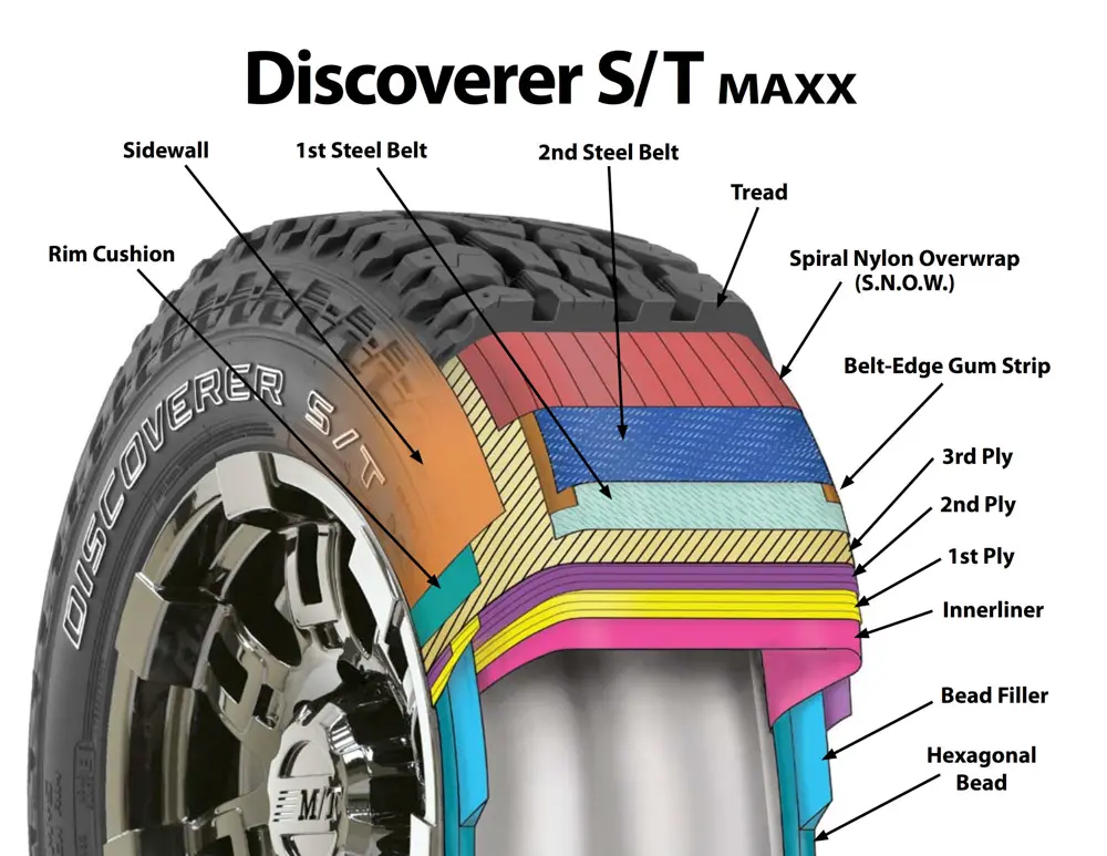 On that note, cord quality also plays a leading role in sidewall puncture resistance. In much the same way that clothing fabric can vary in strength and quality, so too does the quality of nylon cords used by various tyre manufactures. For example: Although the Cooper A/T3 4S has 2-plies on its sidewall, the cord quality is notably stronger than typical nylon cords. Likewise, the steel-belt quality within the A/T3 4S is manufactured from super-tensile steel, rather than high-tensile steel.