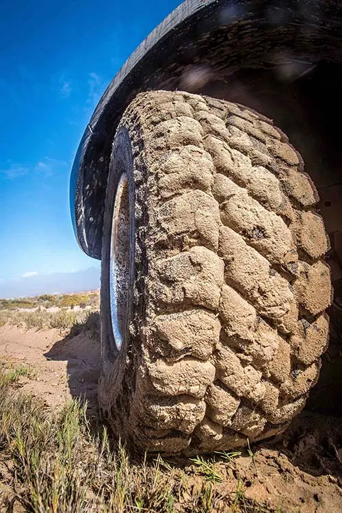 The larger the tyre, the larger the contact area with the terrain, and the greater the tyre’s flotation. This is particularly important when driving on snow, ice and sand. A larger tyre also reduces the impact on the terrain (thus conserving the environment), and lessens the chance of a puncture thanks to reduced impact and greater weight distribution.