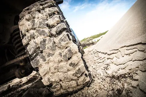 Because sand is so varied in texture, depth and cohesion, it’s too diverse to draw any conclusive arguments. In some cases, a wider tyre will prove beneficial in sand, but in other scenarios, two primary requirements remain unchanged: The need for momentum, and the ability to air down.