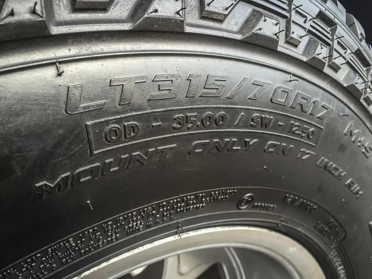 If you keep reading along the tyre’s sidewall you’ll also notice a load range letter. This alphabetical symbol (recognised by the global tyre market) equates tyre thickness to a comparable ply rating. For example, the letter ‘‘E’’ written on the side of a Cooper Discoverer S/T Maxx (265/65/R17) suggests that the comparable sidewall rating would be a 10 ply. Other rating symbols include a C (6 ply), or D (8 ply). However, the notion of equating rubber bulk to a ply count is a bit outdated, and refers to the old tube-type design.